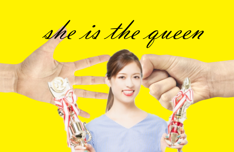 経歴一切不明ながら、その大会の優勝トロフィーを4回連続で手にし、今まさに5回優勝殿堂入りがかかった若き女性をイメージしています。