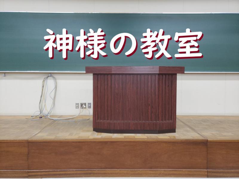 ・教授が教室に入り緊張している様子を見せつつも、穏やかに笑いながら講義を始める。