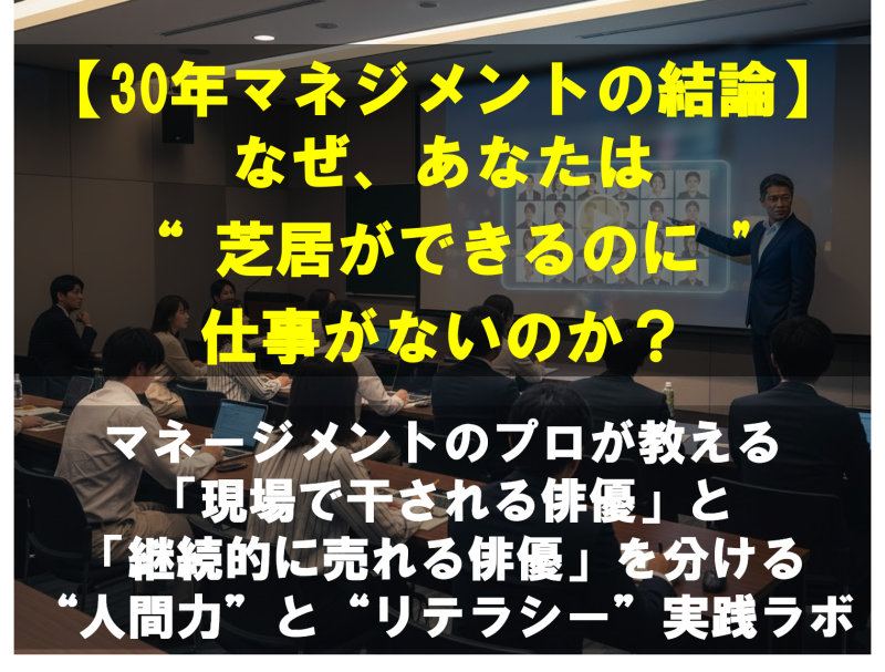 【30年マネジメントの結論】なぜ、あなたは "芝居ができるのに" 仕事がないのか? 無名から全国区になった個性派バイプレーヤー、ハリウッド作品(アカデミー賞・カンヌ国際映画祭受賞)出演俳優を支えたマネージメントのプロが教える「現場で干される俳優」と「継続的に売れる俳優」を分ける “人間力”と“リテラシー”実践ラボ