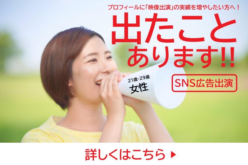 21〜29歳女性募集|プロフィールに「映像出演」の実績を増やしたい方へ!SNS広告動画出演のご案内です