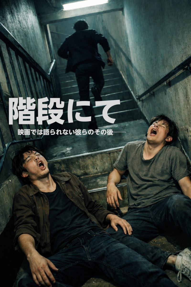 普段は名前も背景も与えられない存在が、カットの合間では何を考え、どう振る舞っているのか、その「裏側」をコメディとして描きます。階段で倒れている⼆⼈は、ヒーローでも悪役でもない「途中で退場する側」