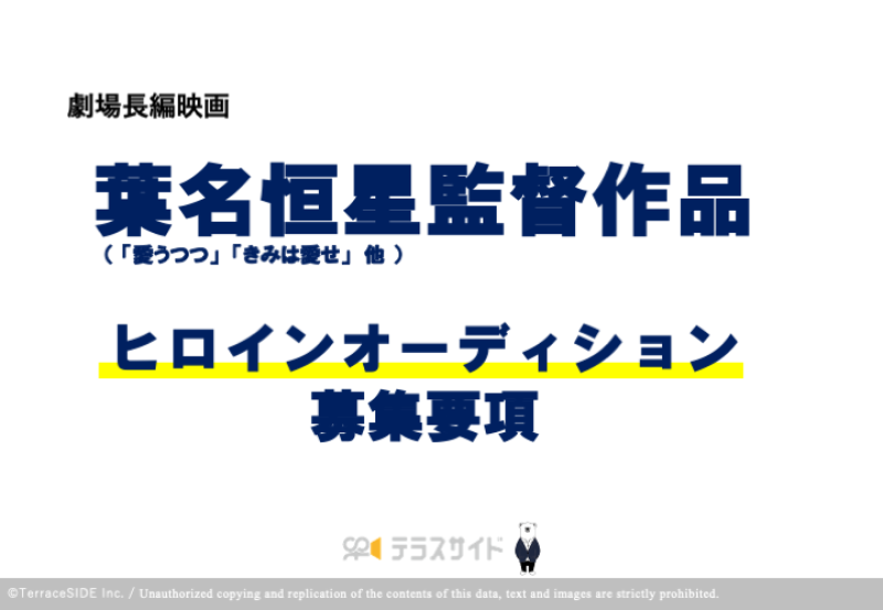 【1/18〆切】【台本閲覧有り】葉名恒星監督作品 長編映画W主演ヒロイン募集 / オーディションのご案内
