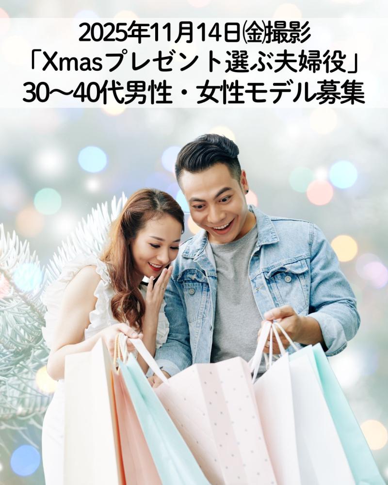 11月14日(金)『撮影某大手商業施設RED公式アカウント/子供にクリスマスプレゼントを選ぶ夫婦役』30代~40代/男性モデル・女性モデル募集致します。
