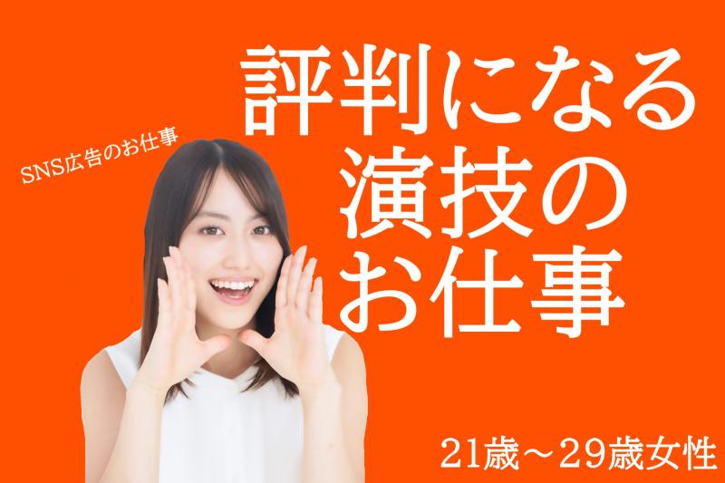 21〜29歳の演技経験がある女性募集|反応が返ってくるあの感覚をもう一度!SNS広告動画出演