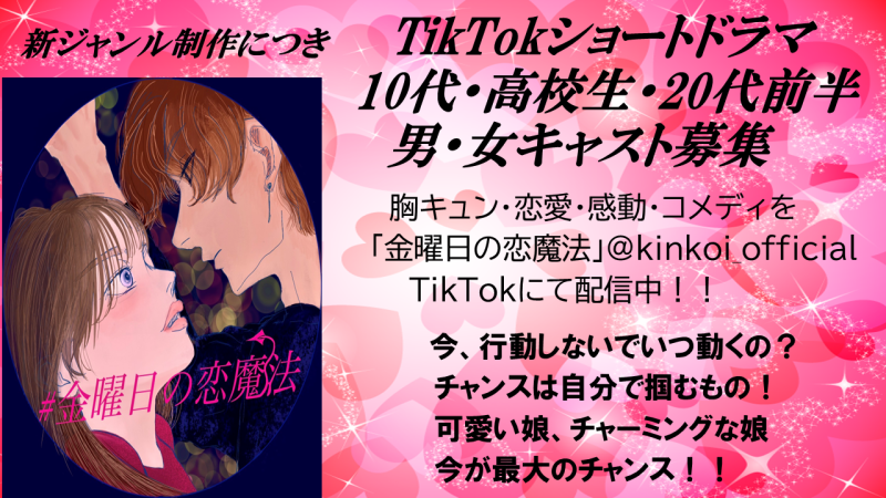 TikTok、Instagram、新ジャンル制作につき、男女キャスト募集! 未経験者OK