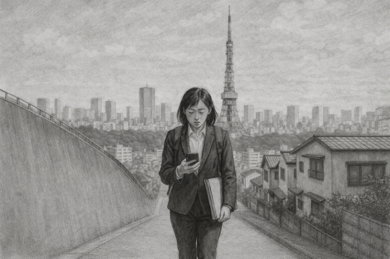 東京で働く不動産会社の新人・林は、営業の壁や文化の違いに向き合いながら日々を過ごしている。語学学校の事務員、上司の大宮とのやり取りの中で、母親の控えめな気遣いに複雑な思いを抱く。ある日、公園で倒れたスーツ男を助けた出来事をきっかけに、人の背後にある責任や思いに気づいていく。夜、歩道橋の上で、林は母親に電話をかける。