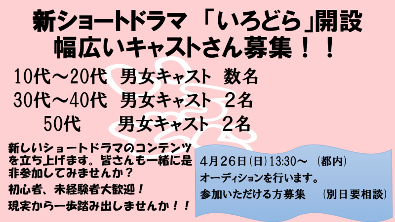 もっともっと良い作品を皆さんで制作していきたく私こそはと思う方は是非応募ください。