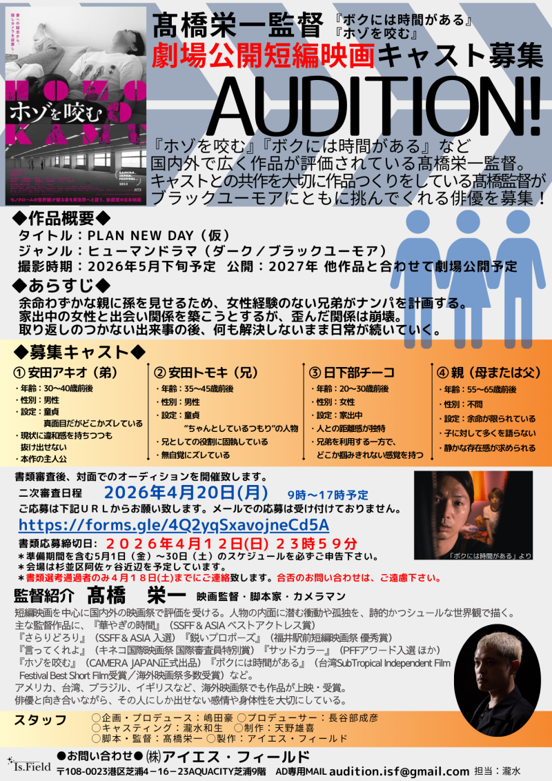 4/12締切!【高橋栄一監督】新規案件オーディション開催のご案内