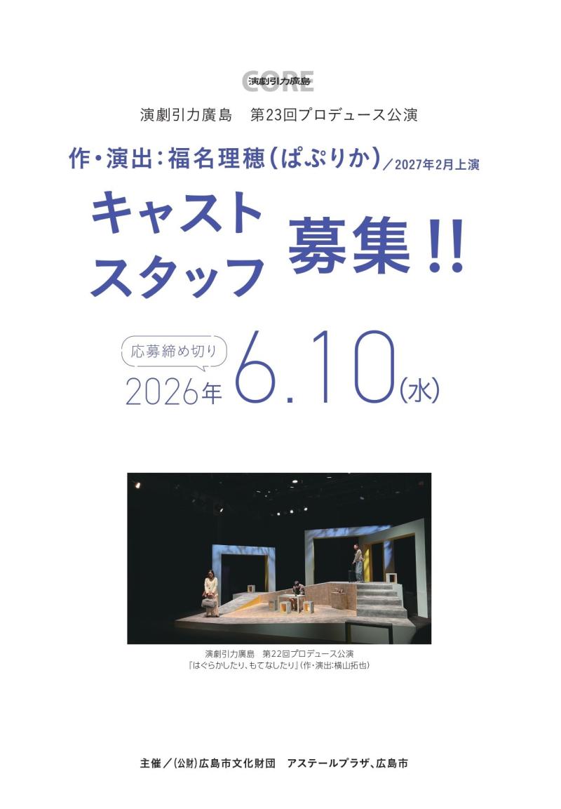 【演劇引力廣島】第23回プロデュース公演(作・演出:福名理穂)キャスト・スタッフ募集!!※6/10(水)締切