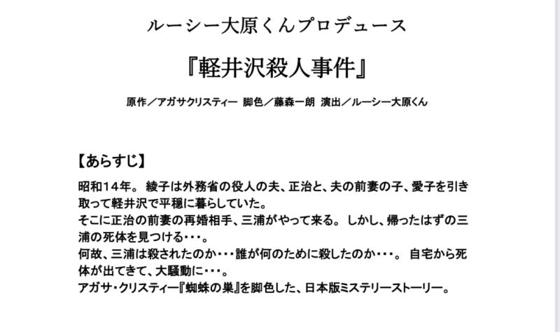 舞台『軽井沢殺人事件』にご出演頂けるキャスト様を募集しております