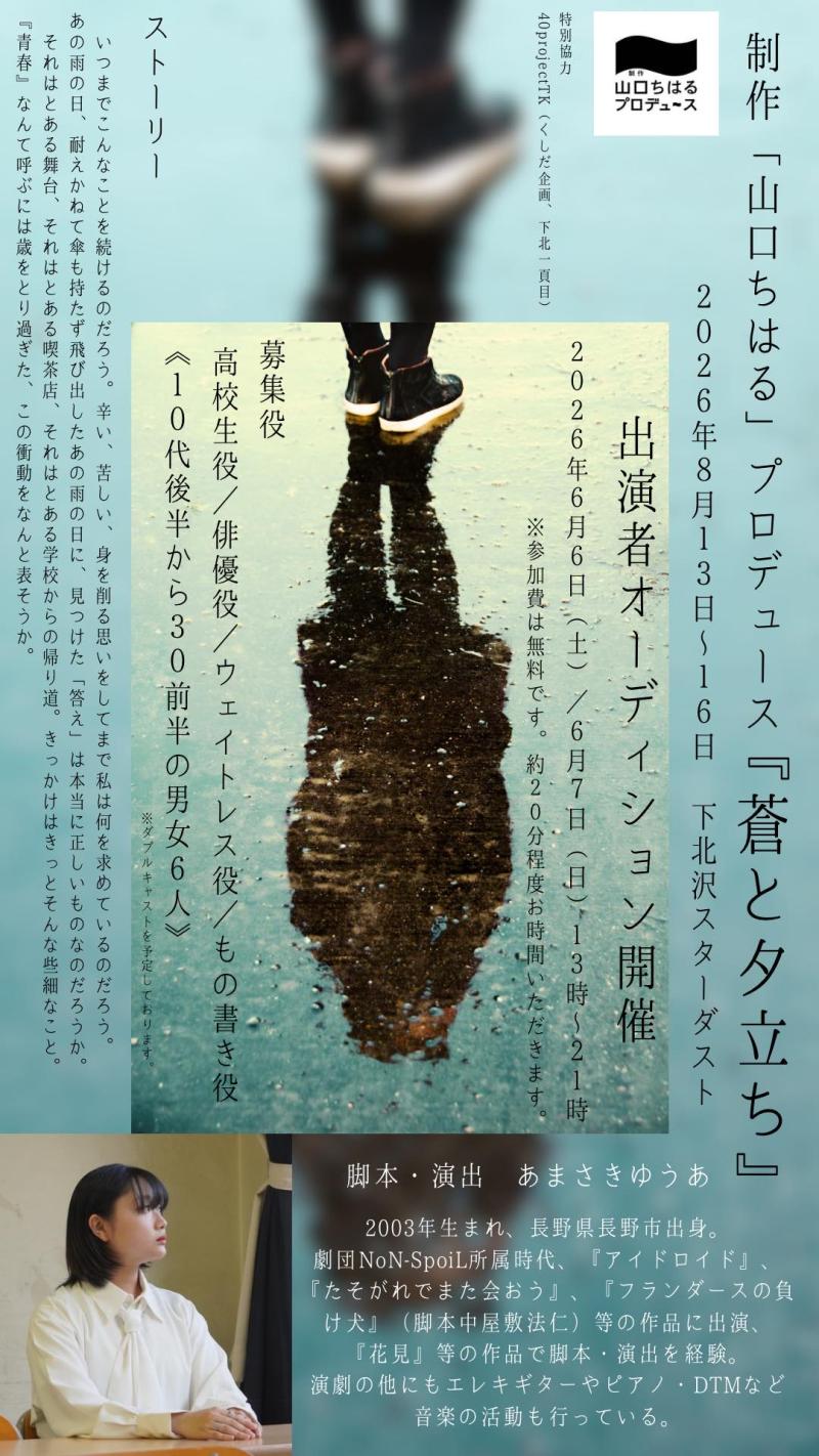 制作「山口ちはる」プロデュース 『蒼と夕立ち』脚本・演出:あまさきゆうあ【2026年8月13日(木)〜16日(日)】出演者大募集!