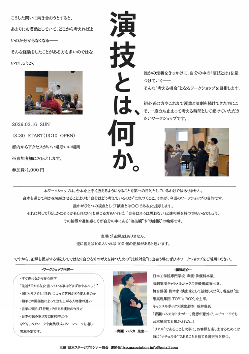 初心者の方やこれまで漠然と演劇を続けてきた方にこそ、一度立ち止まって考える時間として