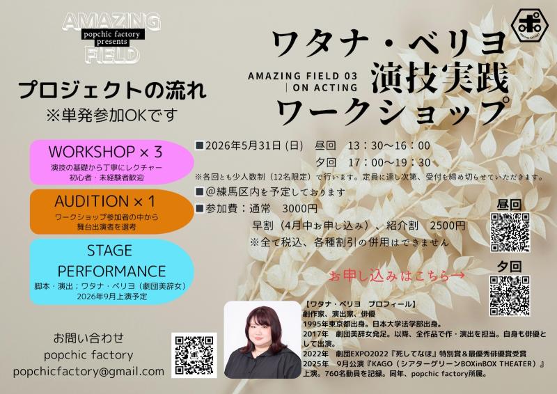 【5/31開催 @練馬区 申し込み締め切り 5/25】劇作家、演出家 ワタナ・ベリヨが直接指導──実践型集中少人数ワークショップ。テキストお持ち帰りいただけます。