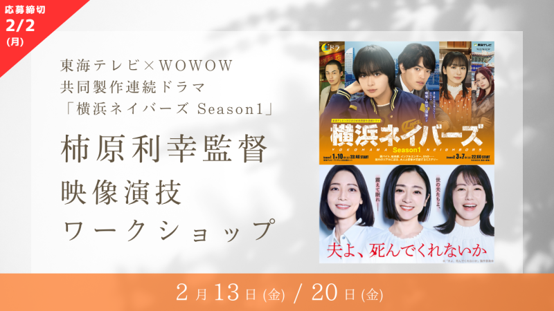 【※参加資格・応募締切が変更になりました※】絶賛放送中、東海テレビ×WOWOW 共同製作連続ドラマ「横浜ネイバーズ Season1」映画監督/ドラマディレクター柿原利幸さんによる演技ワークショップ開催!(2/13、2/20)
