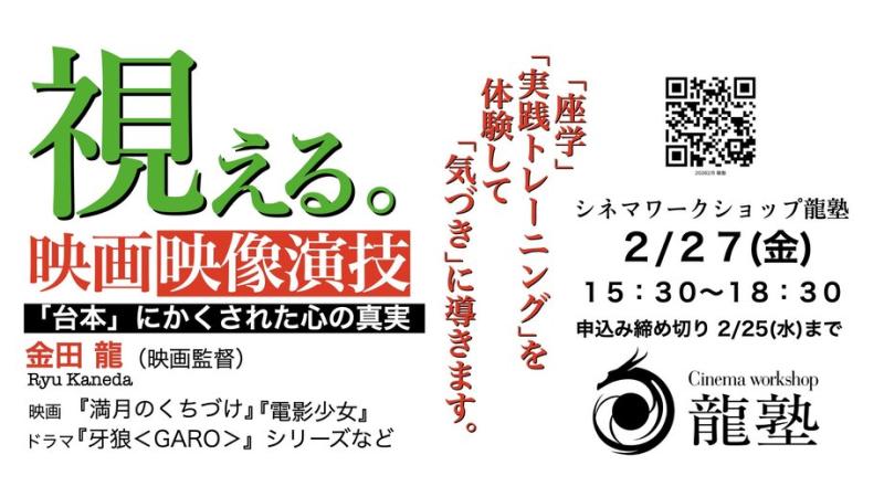 締め切りまであとわずか!【 2/27(金)実施!】「視える。」映画・映像演技/『電影少女』『牙狼<GARO>』シリーズなどの監督 金田 龍が映像演技ワークショップを実します!