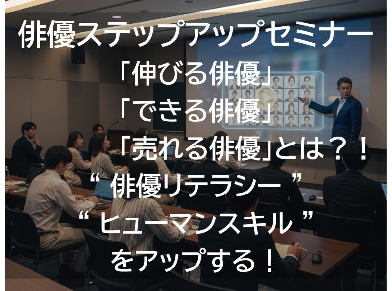 【俳優ステップアップセミナー】「伸びる俳優」「できる俳優」「売れる俳優」になるための“ 俳優リテラシー ”“ ヒューマンスキル ”をアップするセミナーです。マネージメント30年(無名から全国区になった個性派バイプレーヤー、ハリウッド作品出演俳優、ベテラン実力派俳優、元トップアスリートなど)のアドバイザーが俳優で成功するためのセミナーを開催します。(これまでの参加者の感想も掲載しています。)