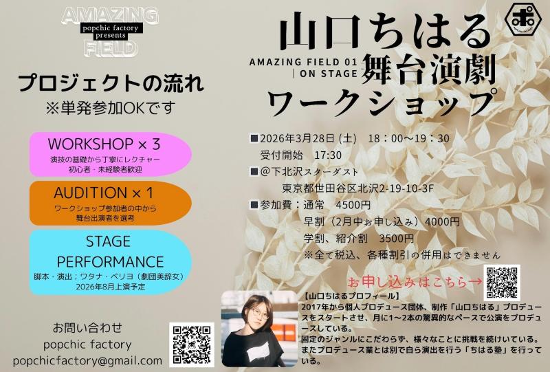 【下北沢|3/28|初心者歓迎・経験者OK】本物の舞台で行う演技WS。演技・舞台がはじめての方も、経験者の基礎を磨き直したい方にも。講師・山口ちはるが直接指導。【学割・早割・紹介割あり】
