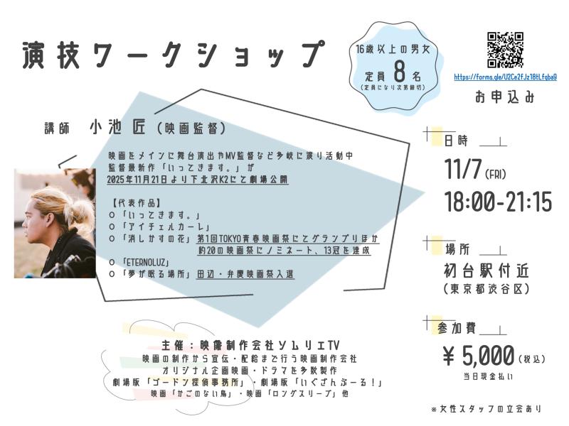 映画監督【小池匠監督】による演技ワークショップ開催!
