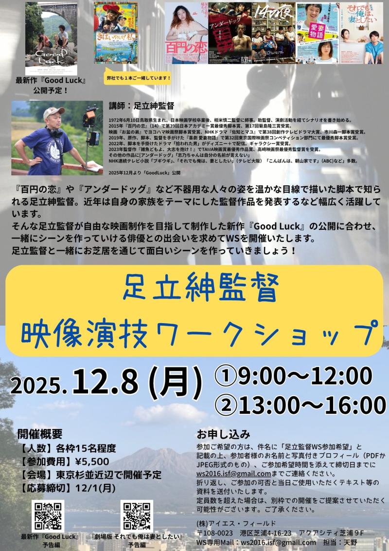【12月1日締切】足立紳監督 映像演技ワークショップ開催