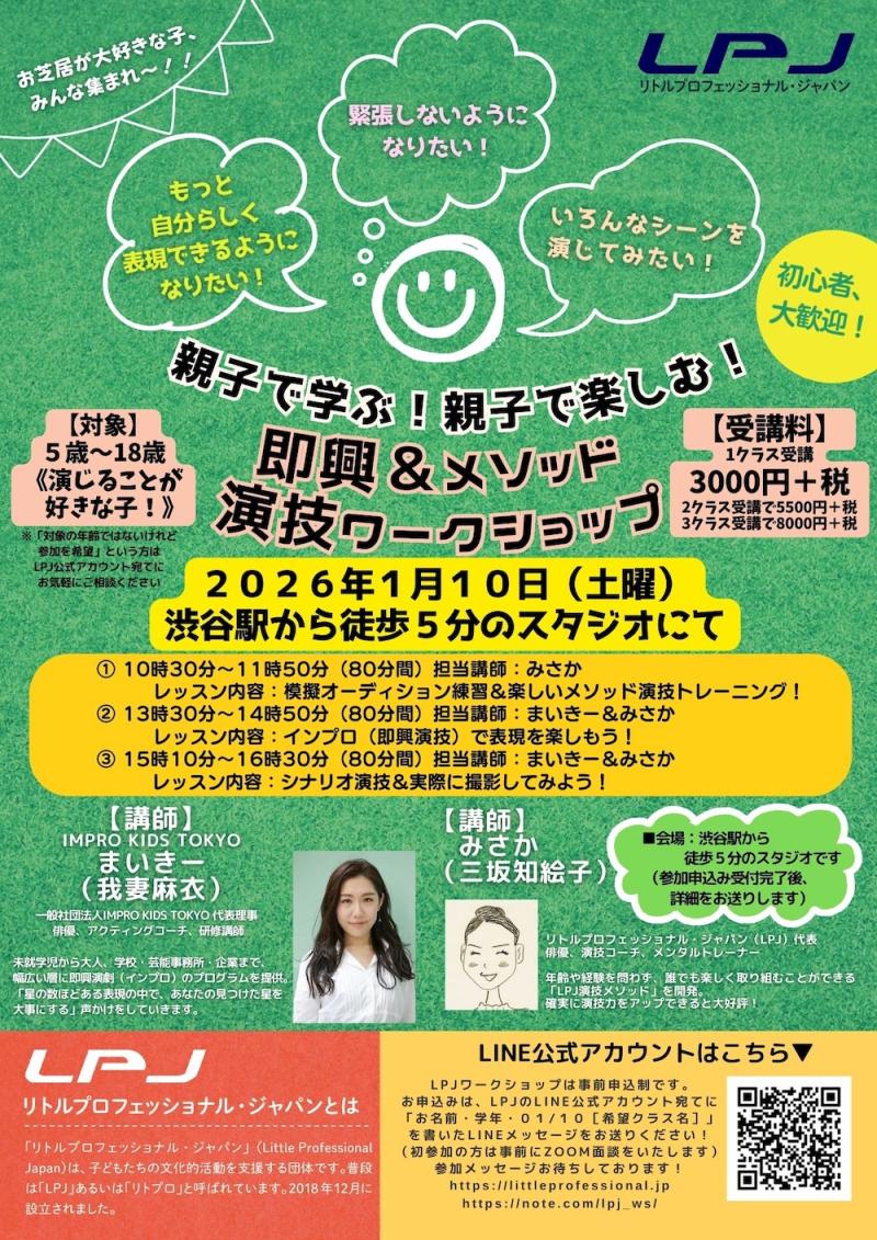 【2026年1月10日(土)開催!】即興演技インプロ&LPJメソッドで楽しく学ぶ♪子ども演技ワークショップ【対象:5歳以上】