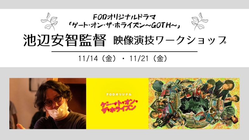 FODオリジナルドラマ『ゲート・オン・ザ・ホライズン~GOTH~』ドラマディレクター池辺安智さんによる演技ワークショップ開催!(11/14、11/21)
