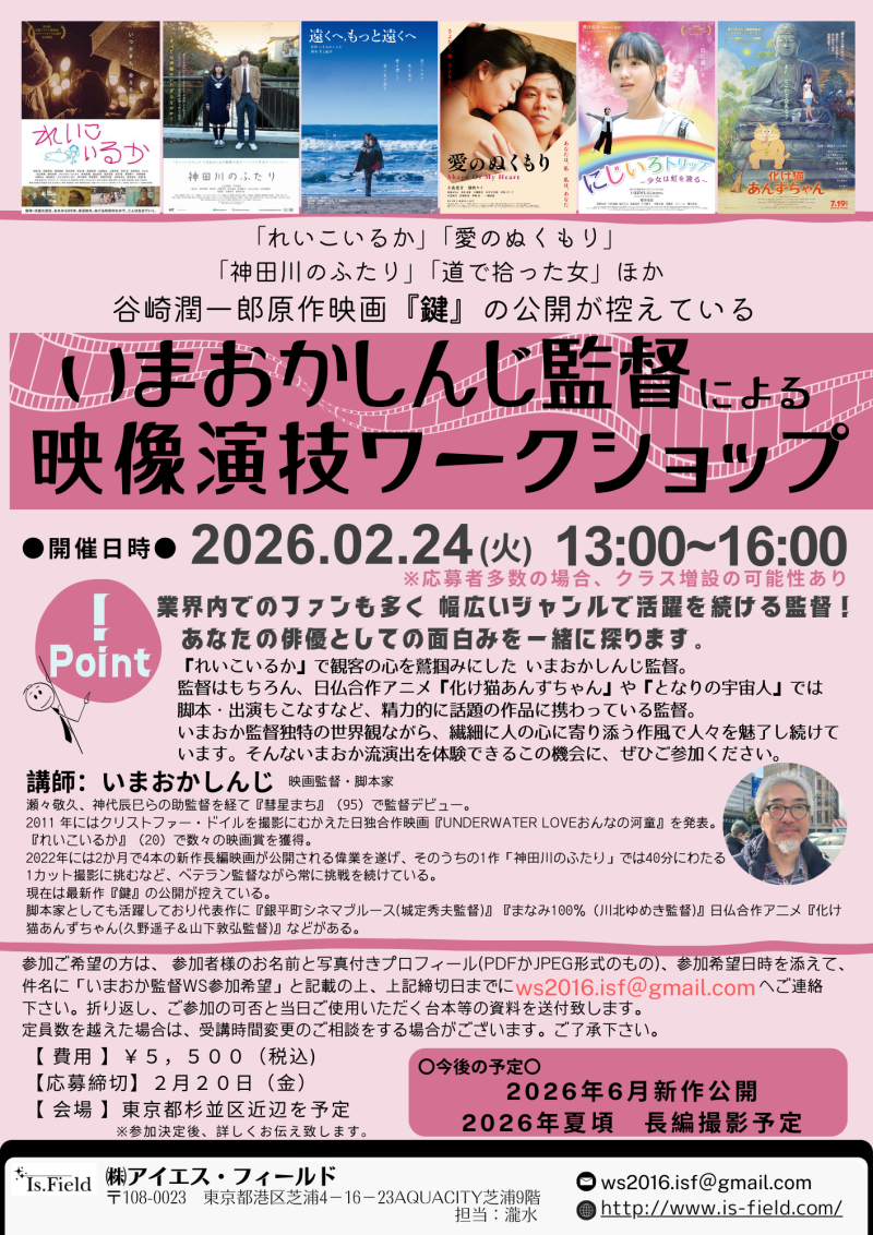 『いまおかしんじ監督 映像演技ワークショップ開催のご案内』
