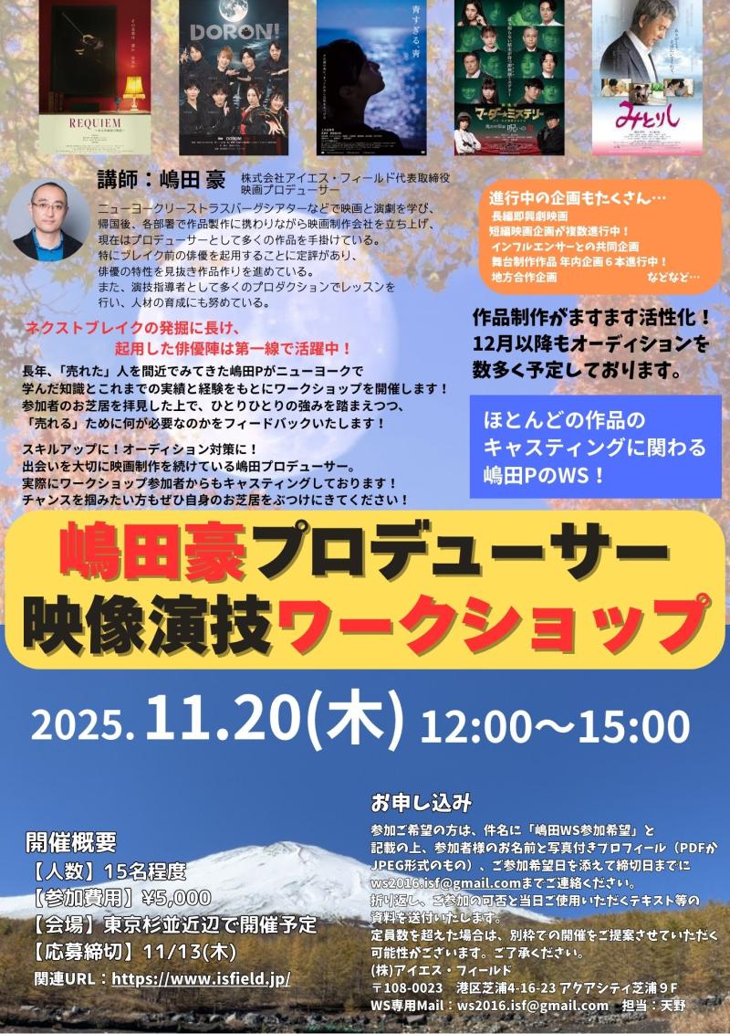 【11月13日締切】嶋田豪プロデューサー 映像演技ワークショップのご案内