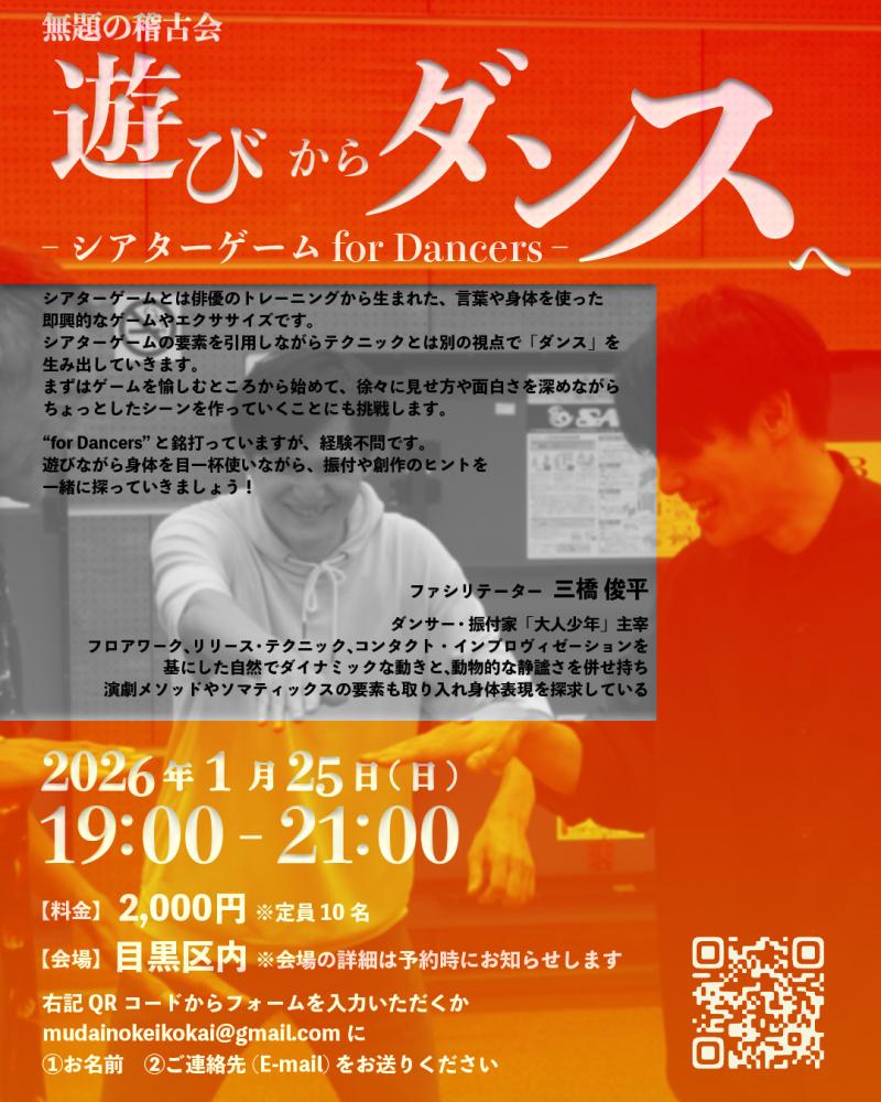 1/25(日) 19:00-21:00 無題の稽古会「遊びからダンスへ-シアターゲーム for Dancers-」