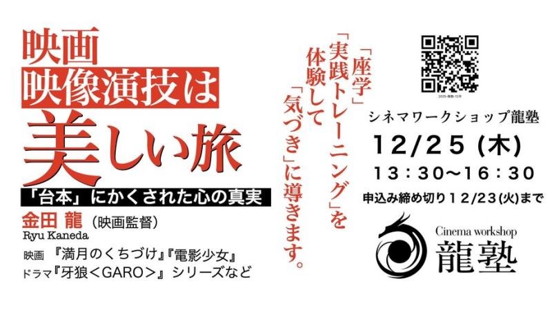 | その他情報 | ・シネマワークショップ龍塾 公式プラットフォーム by Peatix https://ryujuku-2025-1225.peatix.com/ |