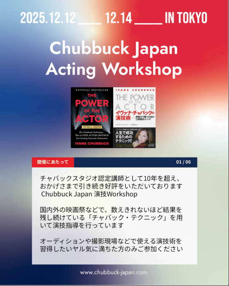 ★☆ 世界中で実績豊富な演技テクニック ★ Chubbuck Japan 演技Workshop@東京/2025.12.12-14 ☆★