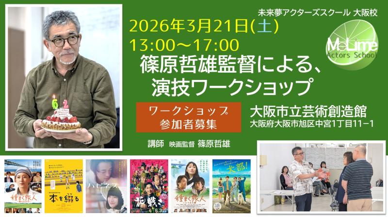 ■2026年3月21日(土) 篠原哲雄監督ワークショップ参加者募集■ 未来夢(みらいむ)アクターズスクール大阪校