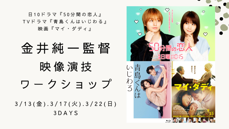 日10ドラマ『50分間の恋人』、TVドラマ『青島くんはいじわる』、映画『マイ・ダディ』の金井純一監督による映像演技ワークショップ開催!(3/13、3/17、3/22)
