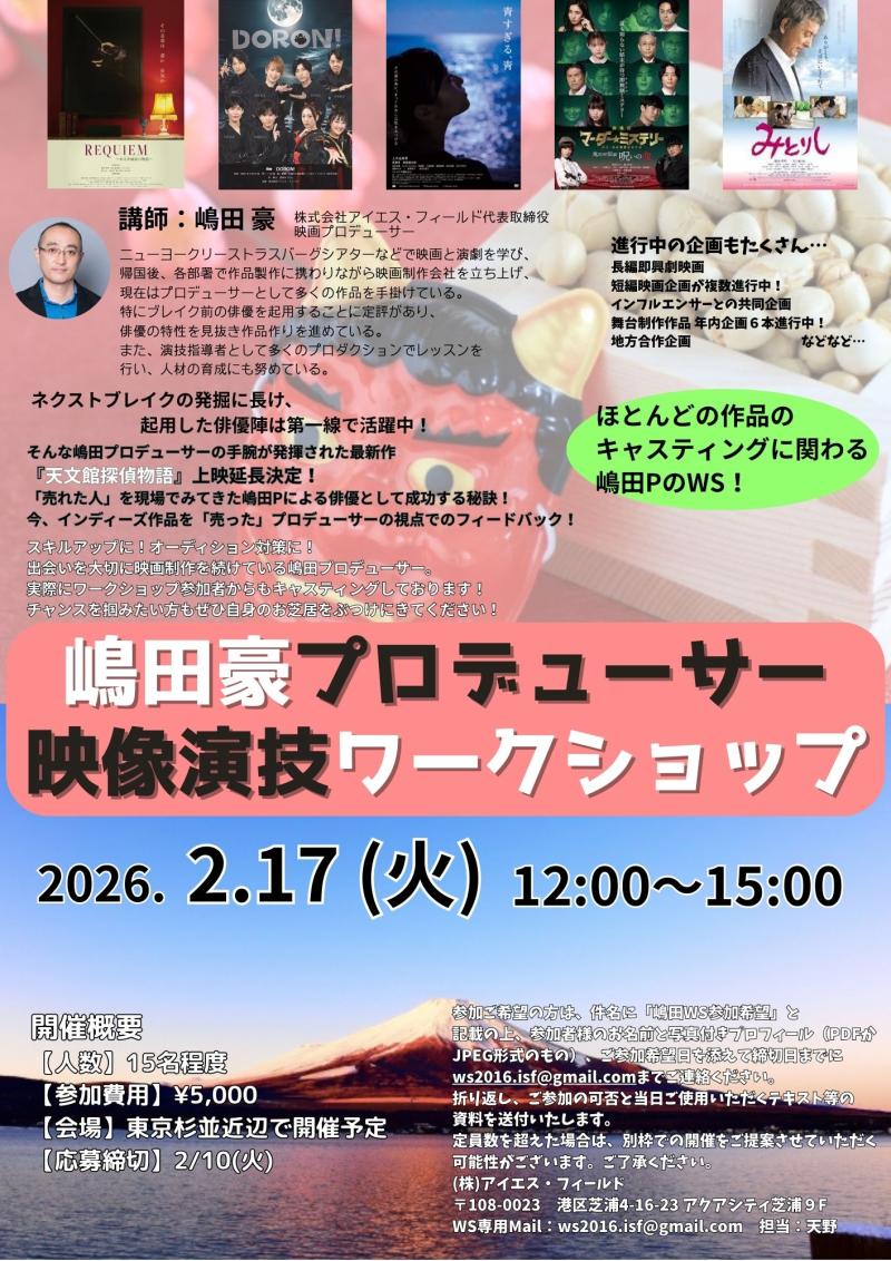 【2月10日締切】嶋田プロデューサー 映像演技ワークショップ