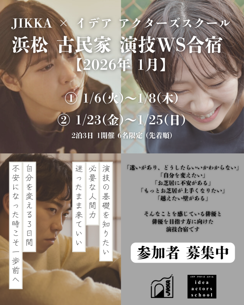 【1月開催】 人間力をつけて、もうひとつ上の演技を目指す!ここにしかないオリジナルメニューで送る 古民家・演技合宿 参加者募集!!