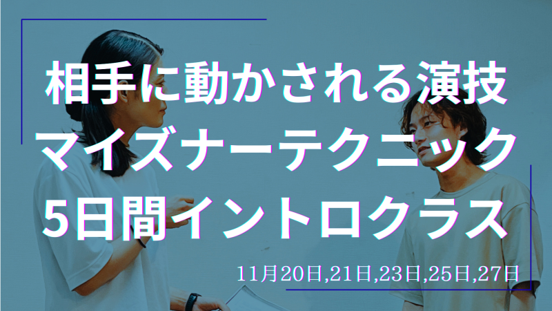 【映像・舞台演技の基礎】マイズナーテクニック5日間イントロクラス 11/20,21,23,25,27 U25割引あり