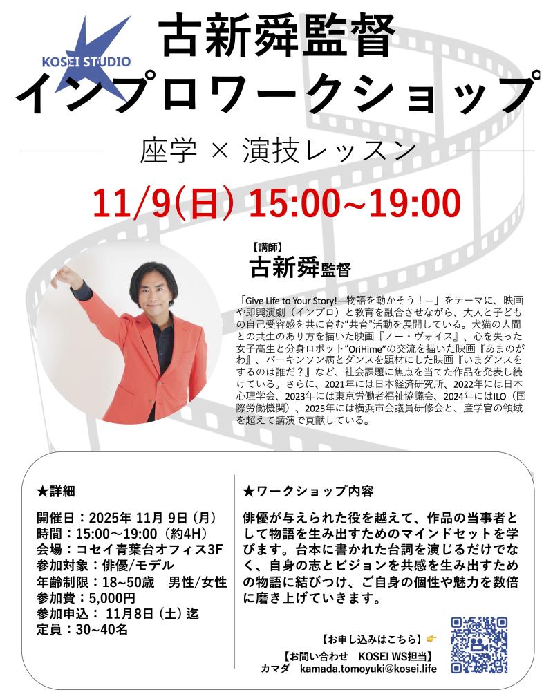 【KOSEI STUDIO主催】 11/9(月)古新舜監督 インプロワークショップ