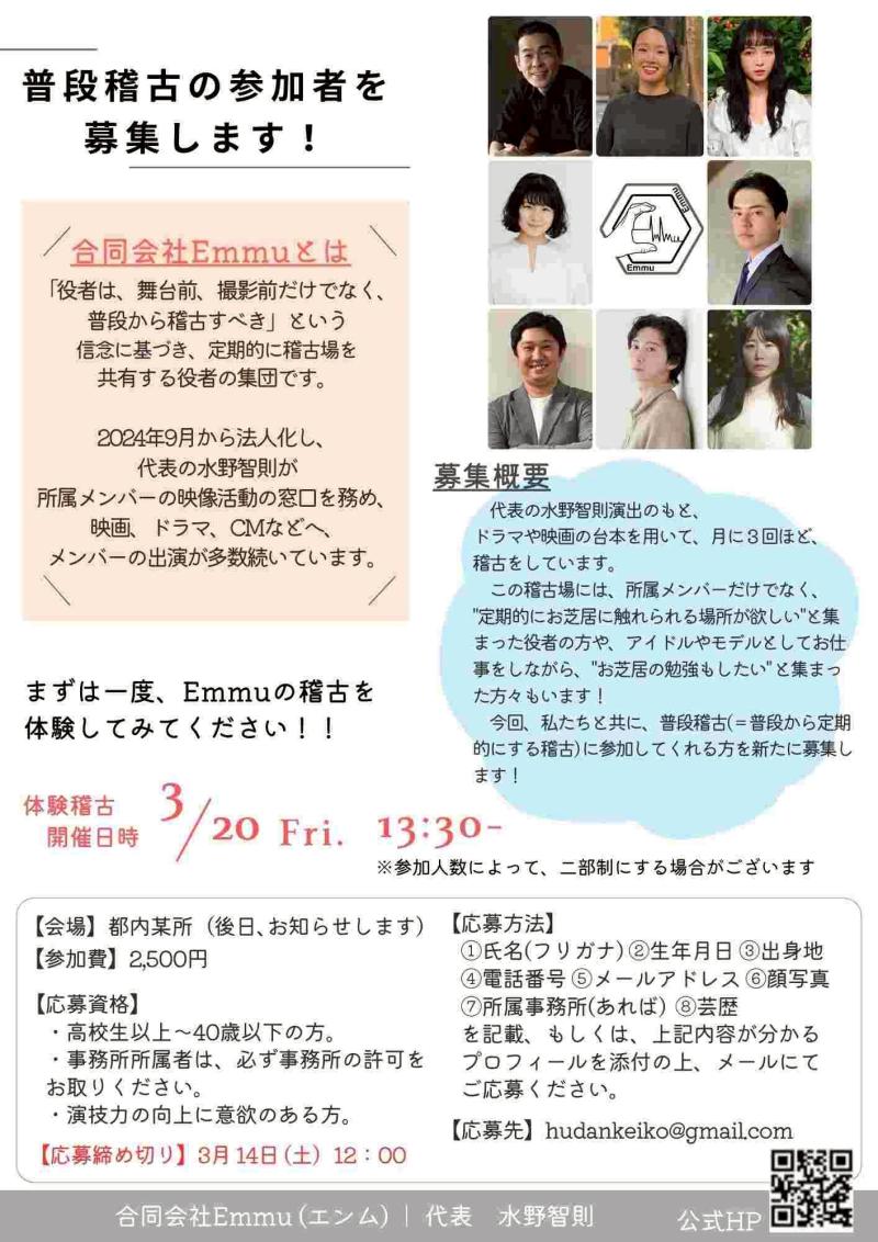 ※「合同会社Emmu」や「普段稽古」について、ご質問等ございましたら、公式HPのお問い合わせフォーム、または、InstagramやTwitterのDMからでも、お気軽にお問い合わせください!※