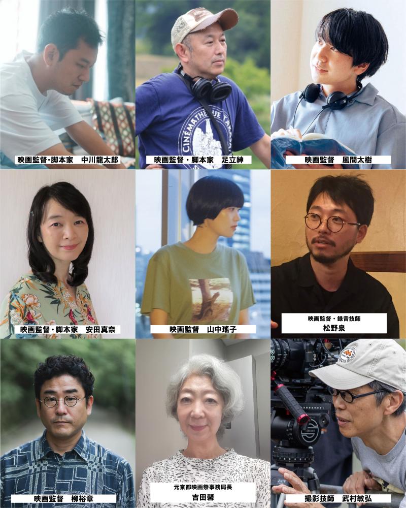 足立紳(映画監督・脚本家)/中川龍太郎(映画監督・脚本家)/風間太樹(映画監督)/山中瑶子(映画監督)/松野泉(映画監督・録音技師)/柳裕章(映画監督)/武村敏弘(撮影技師)/安田真奈(映画監督・脚本家)/吉田馨(元京都映画祭事務局長)