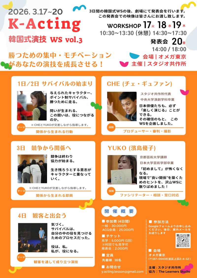 K-Acting WS vol.3 「勝つための集中・モチベーションがあなたの演技を成長させる!」 (3/17~20)