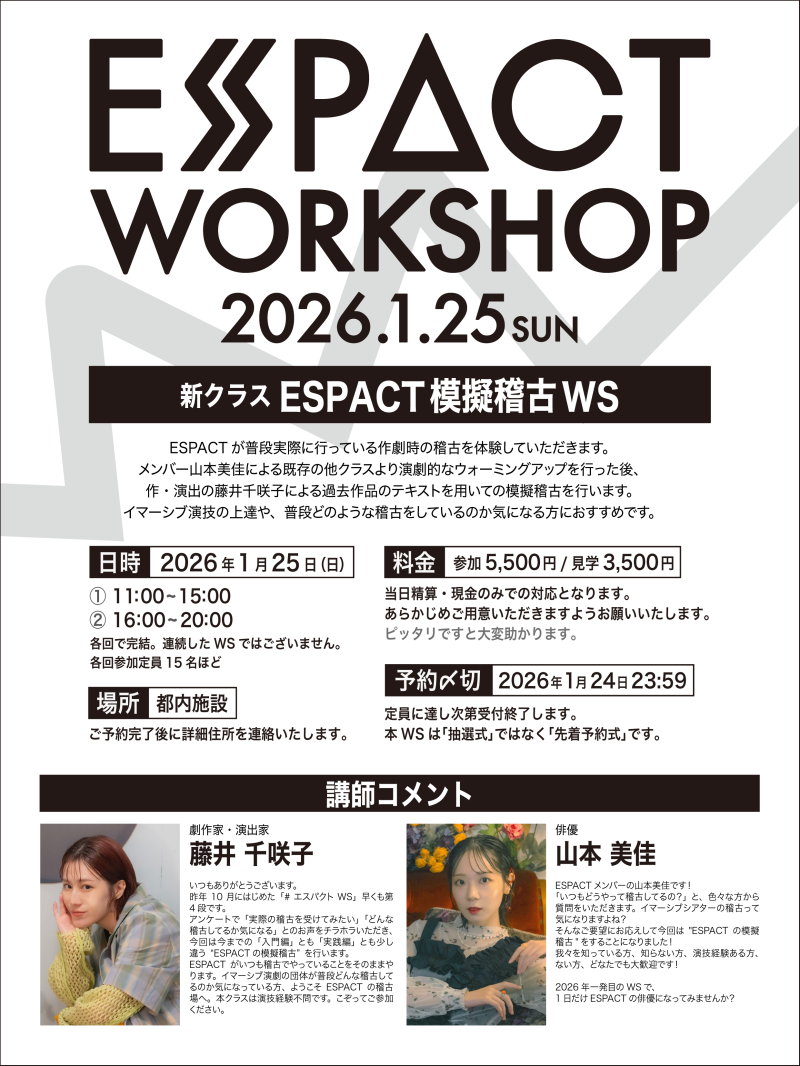 1/25(木)ESPACT イマーシブシアター特化型 模擬稽古ワークショップ受講者募集!
