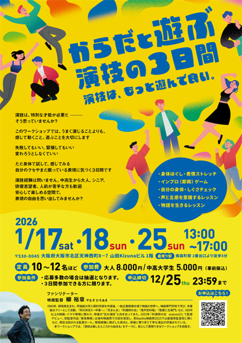 映画監督・柳裕章による演技ワークショップを大阪にて開催!
