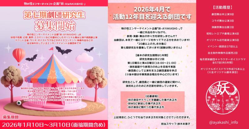 物の怪エンターテイメント企画『妖-AYAKASHI-』第七期劇団研究生募集