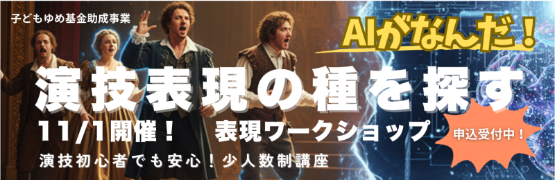 11月1日(土)あと6名「AIがなんだ! 演技表現の種を探すワークショップ」セリフから自由になろう 助成金事業のため少人数制でもワンコイン! 10/31〆切
