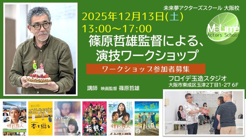■2025年12月13日(土) 篠原哲雄監督ワークショップ参加者募集■ 未来夢(みらいむ)アクターズスクール大阪校