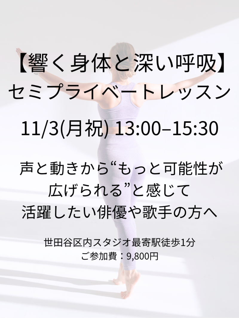 ◾️響く身体と深い呼吸|俳優・歌手・ダンサーのためのセミプライベートレッスン(11/3月祝・都内)