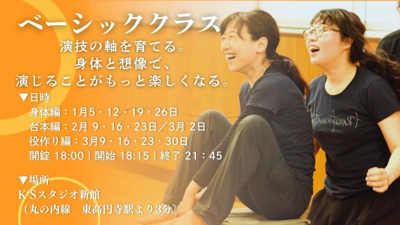 1月スタート「ベーシッククラス」~ 演技の軸を育てる。身体と想像で、演じることがもっと楽しくなる~」