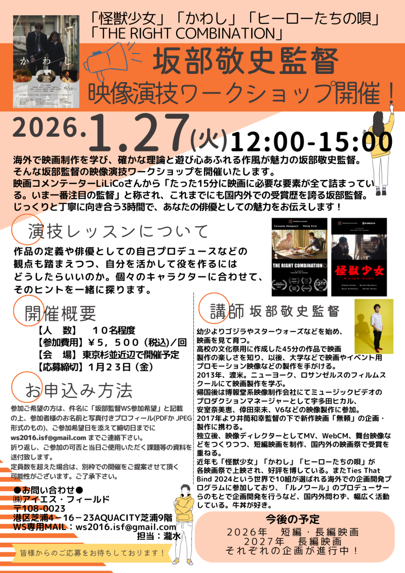 『坂部敬史監督 映像演技ワークショップ開催のご案内』