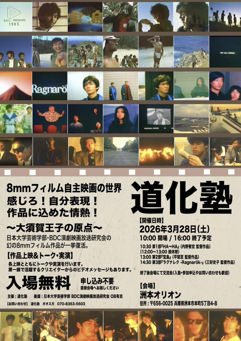 道化塾〜大須賀王子の原点〜(日本大学芸術学部・BDC演劇映画放送研究会 幻の8mmフィルム作品上映&トーク・実演)