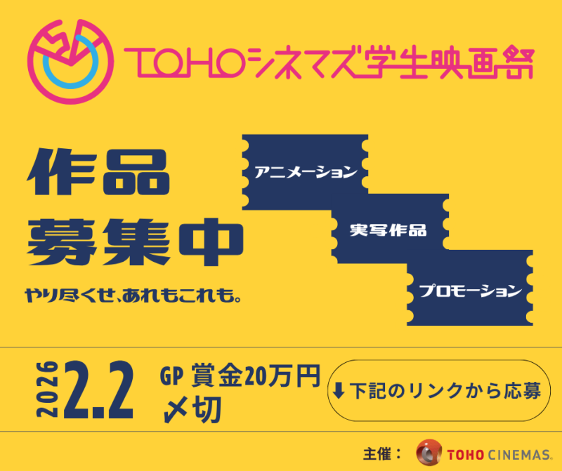 TOHOシネマズ学生映画祭・作品募集!【2026年2月2日〆切】