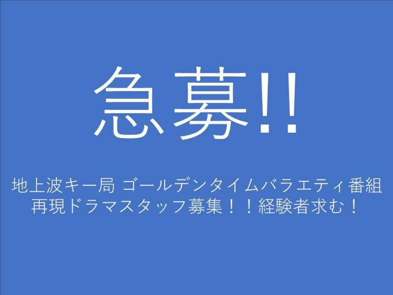 【急募!/短期】地上波TVバラエティ番組再現ドラマ 助監督募集!